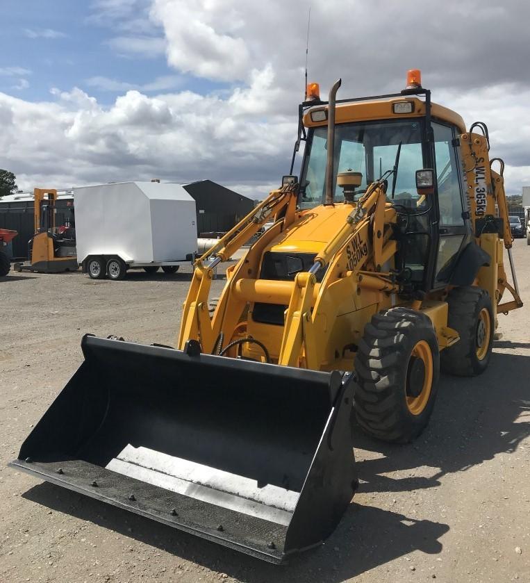 JCB 2CX Airmaster Backhoe Loader 4x4. 51.5 Hp, 4 Cylinder, Diesel, 51.5 Hp, Engine #: RE38081U119920L, 5388 Hours used, Trans: Synchroshuttle 4 speed forward, 4 speed reverse, Tyres Front: 12.5/80-18 Rear: 12.5/80-18, Good Tyres, Sideshift Extenda Hoe, Auxiliary piping, enclosed A/C cab, FOPS, ROPS, rear hydraulic stabilisers, 3 tooth bucket 390mm, quick hitch, 4 in 1 bucket 1800mm, Swivel seat, lever controls, forward/rear lights, amber beacon lights, UHF radio, loader SWL 1050kg, backhoe SWL 365kg, Serial No: SLP2CXAS4E0946772