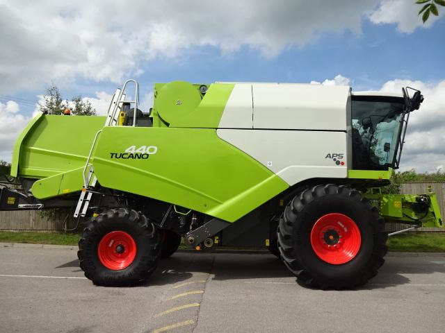 CLAAS TUCANO 440 COMBINE, YEAR 2009, 1415 ENGINE HOURS, 912 DRUM HOURS, C/W V660 AUTO CONTOUR HEADER, HYDRO TRANSMISSION, STRAW CHOPPER CHAFF SPREADER, 3D SIEVES, APS THRESHING SYSTEM, PASSENGER SEAT, AIR CON, 500/85R24 & 680/85R32 WHEELS & TYRES